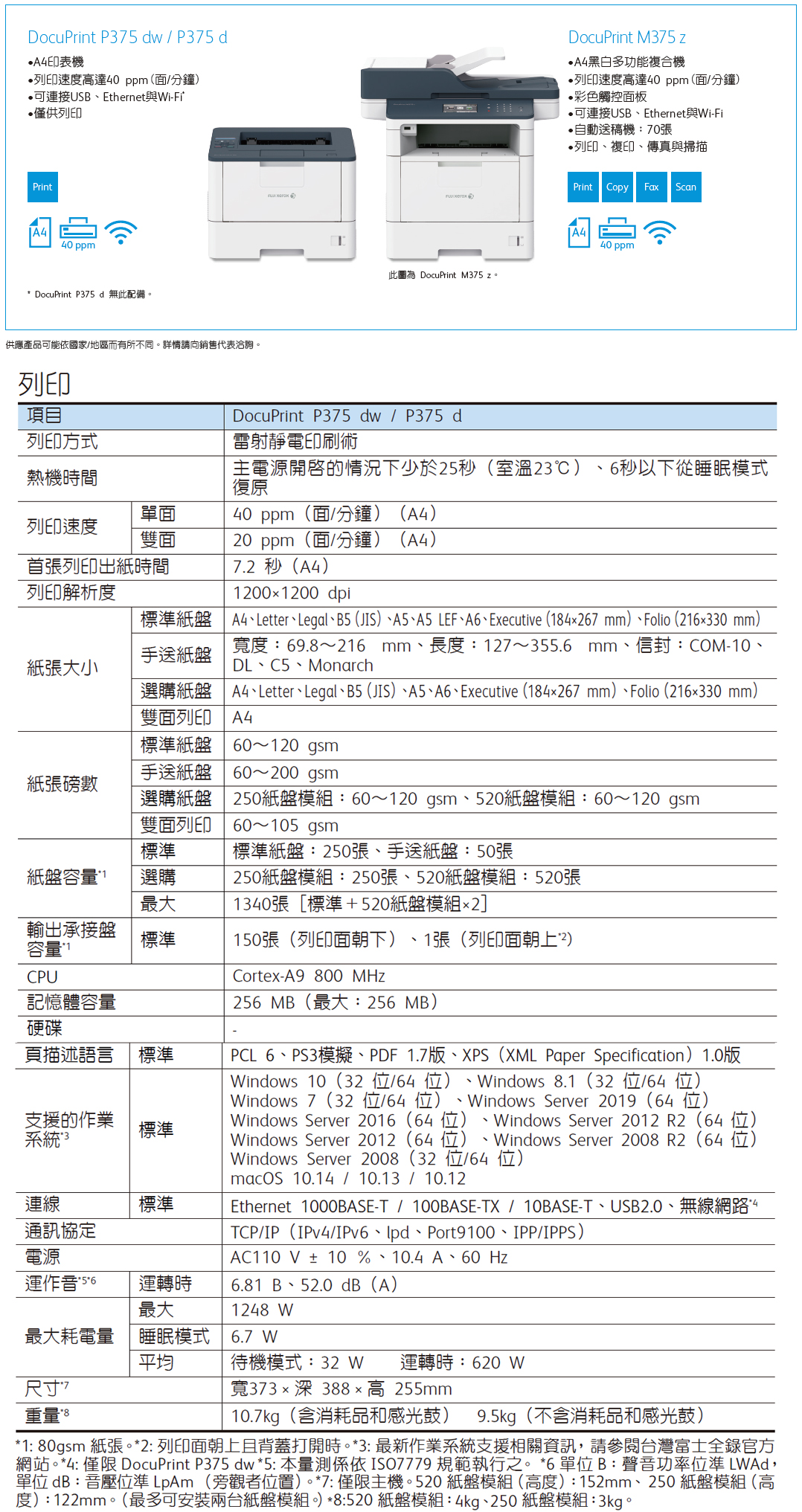* DocuPrint M375 z 與 DocuPrint P375 dw 配備。