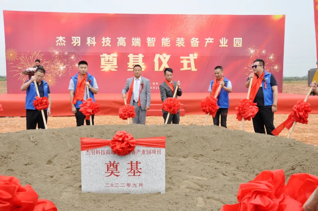 2022年9月25日上午9時18分, 良辰吉日,天降吉祥。伴隨著喜慶的禮炮聲以及挖掘機的陣陣轟鳴聲,杰羽科技高端智能裝備制造產(chǎn)業(yè)園奠基儀式在項目工地隆重舉行!