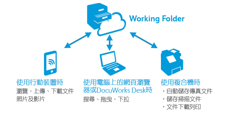 • 行動(dòng)及雲(yún)端整合運(yùn)用 支援Google雲(yún)端列印及AirPrint行動(dòng)列印,下載Fuji XeroxPrint Utility 應(yīng)用程式除列印外,更可經(jīng)由無線網(wǎng)路將書面文件掃描至行動(dòng)裝置上。透過Working Folder選購功能(富士全錄雲(yún)端服務(wù)),經(jīng)安全性及權(quán)限控管,授權(quán)使用者儘管不在公司內(nèi),亦可連上網(wǎng)路,將文件掃描上傳、下載傳真、或列印檔案至辦公室內(nèi)的複合機(jī)。